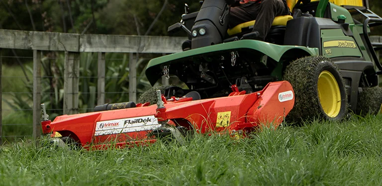 The Trimax FlailDek FX™ offers a high performance alternative to the standard factory-fitted flail mowing attachments found on John Deere, Kubota, Iseki, New Holland, Shibaura, Hustler and other out-front tractors.