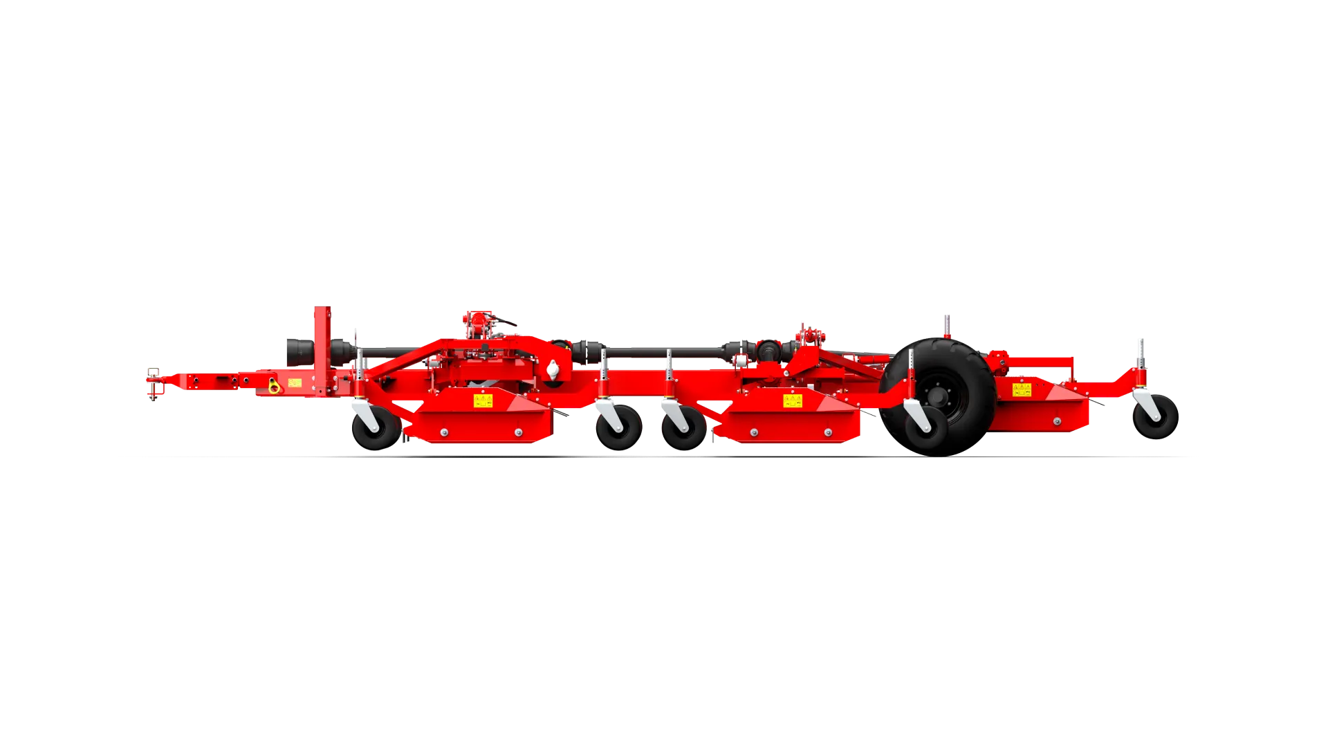 Mowing decks travel on front and rear castors, allowing long grass to be cut without being rolled first. Castors are offset to minimise compaction.